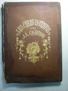 [BEAUX-ARTS]. Les Chefs-d'reuvre de la gravure . Paris, Imprimerie Vallée, 1863 ; gr. in-4, demi-chagrin marron, plats de percaline ornés de motifs dorés. Album de 24 grandes gravures sur métal d'après les tableaux des maïtres. Chaque figure...
