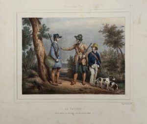 On joint : Francis GRENIER (Francis) et PALISSE. Album du chasseur. Paris, Pigoreau, s.d. [vers 1870]. In-4 oblong, percaline rouge (Cartonnage de l'éditeur). Un titre-frontispice et 3 planches (sur 22) lithographiées par Roche (« On rencontre quelquefois cet album avec seulement le frontispice et 3 planches », note Thiébaud). Exemplaire de prix provenant de la bibliothèque Marcel Jeanson, avec ex-libris, incomplet et débroché, cartonnage abîmé, plats détachés, quelques rousseurs. Thiébaud, 477.