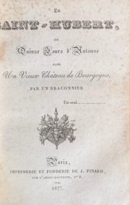 [MAC-MAHON (Charles de)] — La Saint-Hubert, ou quinze jours d'automne dans un vieux château de Bourgogne, par un braconnier.