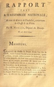 MERLIN DE DOUAI (Philippe-Antoine) — Rapport fait à l'Assemblée Nationale, au nom du comité de Féodalité, concernant la chasse & la pêche. Du 20 avril 1790. [Paris],