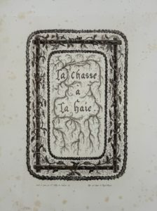 Paris, Mme Bouchard-Huzard, 1858. Grand in-4, bradel cartonnage chamois imprimé de l'éditeur. Édition originale de cette étude sur les anciens droits en usage pour la chasse aux haies. Elle est ornée d’un frontispice chromolithographié d'après Leblanc et Peigné-Delacourt, un titre gravé par Mme Dufay et 12 figures dans le texte.