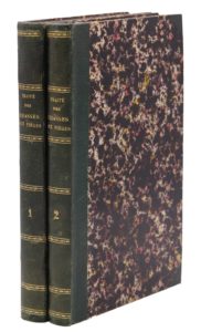 Paris Audot, 1822. 2 volumes in-8, demi-maroquin vert avec coins, dos lisse orné, tranches mouchetées (Reliure de l'époque).Édition originale d'un des meilleurs ouvrages sur le piégeage, présenté comme un complément au Traité général de toutes les chasses de Jourdain.