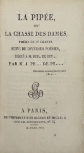 [PERRIN DE PRÉCY (J.)] — La Pipée, ou la Chasse des dames, poëme en IV chants, suivi de diverses poésies.