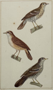 [PLANCHES]. PRÊTRE, Jean-Gabriel (1768-1849) — Turdus philomelos. Grive Musicienne. Luscinia megarhynchos. Rossignol philomèle. Turdus viscivorus. Grive draine.