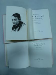 CARCO (Francis). La Bohème et mon coeur suivi de chansons aigres-douces et de petits airs. Avec un portrait de l'auteur par André Derain.— Poèmes retrouvés. (1904-1923). Avec une préface inédite. Paris, Cité des livres, 1927 ; 2 vol. pet....