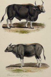 [PLANCHES]. TRAVIÈS Édouard (1809-v. 1869) — Taureau et vache.