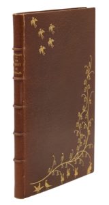 Paris, A. Ferroud, 1892. In-8, maroquin brun, décor de plante à clochettes dorée et mosaïquée et de fers dorés de lapin, faisans, pigeons et canards, dentelle intérieure, tête dorée, non rogné, couverture et dos (Ch. Meunier).Édition originale, ornée de quatre eaux-fortes hors texte d’Adolphe Lalauze et de dix compositions d'Hector Giacomelli gravées sur bois en encadrement du texte.