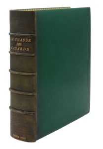 Paris, La Toison d'or, 1953. In-4, maroquin vert janséniste, dentelle intérieure, tête dorée, non rogné, double couverture et dos, étui bordé (Brugalla, 1964).Édition originale de cet « ouvrage majeur de la chasse au canard » (Kaps).