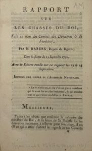 BARÈRE DE VIEUZAC (Bertrand) — Rapport sur les chasses du roi, fait au nom des Comités des Domaines & de Féodalité, dans la séance du 13 septembre 1790. [Paris],