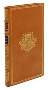 Exemplaire aux armes du vicomte Edmond de Poncins (2002, n°315), illustre chasseur et explorateur, avec l’ex-libris gravé par son épouse d’après la photographie d’un de ses campements aux Somalis.