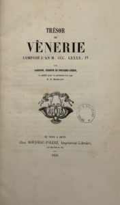 FONTAINES-GUÉRIN (Hardouin de) — Trésor de vénerie, composé en l'an 1394, et publié pour la première fois par M. H. Michelant.