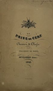 SAUX (François de) — La Prise du cerf. Chanson de chasse. Offlange (Jura), s.n. [impr. Outhenin-Chalandre fils à Besançon],