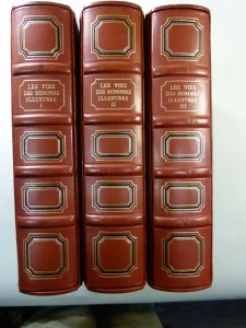 [DECARIS].— PLUTARQUE. Les Vies des hommes illustres. Traduction de Jacques Amyot. Préface de André Maurois. Gravures au burin de Decaris. Paris, Club du livre, Philippe Lebaud, 1967 ; 3 vol. in-4, basane brique, sur les plats large décor...