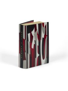 Paris, Denoël & Steele, 1936. In-8, maroquin noir au champ orné d'une riche composition mosaïquée alternant des pièces irrégulières de box blanc, gris, rouge et grenat, dos lisse titré verticalement à l'or, doublures et garde de daim fuschia serties d'un listel de box gris perle, tranches dorées sur témoins, couverture et dos, chemise et étui gainés du même maroquin (C. & J.-P. Miguet, 1994).Édition originale du deuxième roman de Céline, dédié à Lucien Descaves.