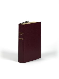 Paris, Gallimard, 1954. In-8, maroquin janséniste grenat, dos lisse, doublures et gardes de daims gris serties d'un listel de box gris perle, tranches dorées sur témoins, couverture et dos, chemise et étui gainés du même maroquin (J.-P. Miguet).Édition originale.