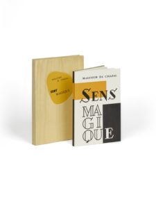 – Sens magique. Tananarive (Madagascar), Société lilloise d'imprimerie, 1957. In-8, en feuilles, couverture en trichromie, emboîtage de soie imitation bambou. Édition en partie originale publiée la même année que l'originale mauricienne. Un des 10 exemplaires de tête sur bambou japon (n°II). Très bel exemplaire à l'état de parution.