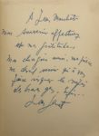 Envoi autographe signé : À Jean Marchat, mon souvenir affectueux et ma gratitude, mon chagrin aussi, ma pièce ne devrait servir qu'à vous faire risquer le mépris des braves gens. Enfin...