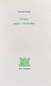 – Petite suite vivaraise. [Montpellier], Fata Morgana, 1983. Édition originale. Un des 60 exemplaires sur vélin pur fil Johannot.