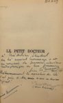 Émouvant envoi familial de Georges, Denyse et Jean Simenon à la journaliste Micheline Sandrel (1918-2012), comprenant cette dédicace autographe signée de l'auteur : à Micheline Sandrel, en très amical hommage – et en souvenir du premier entretien radiophonique de ma femme ; ainsi qu'une mention de cette dernière : Malheureusement, la signature du bébé n'est guère lisible, mais ce sera en tous cas original !, signée Denise ; et la “signature” de Jean dit John Simenon, alors bébé : un gribouillis au crayon, sous lequel sa mère a inscrit son nom.