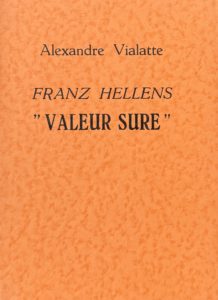 VIALATTE (Alexandre) — [Brimborions]. Franz Hellens « valeur sûre ». – Un siècle étonnant. – Franz Hellens et ses mythes. – La Lettre d’amour que j’aurais le mieux aimé écrire. – “L’Empereur a dépêché un de ses messagers...”