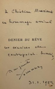 Envoi autographe signé dans chaque volume : à Christian Murciaux dans Denier du rêve et à Jean Schlumberger dans Les Songes et les sorts.