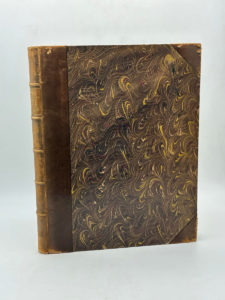 filet à froid, dos à faux-nerfs soulignés d'un filet doré et encadrés à froid, titre doré sur pièce de cuir blond, chiffre "S.M." doré en pied. 20 pages (introduction) et 80 planches de photographies en noir et blanc, le tout monté sur onglets. Quelques illustrations en noir et blanc dans le texte. Page de titre imprimée en noir et rouge. Reliure frottée avec de légers manques. Édition originale. Importante monographie consacrée à l'hôtel de Beauharnais, un chef d’œuvre du style Empire, aujourd'hui siège de l'ambassade d'Allemagne à Paris. On y trouve 80 planches de photographies en noir et blanc couvrant la quasi-totalité des éléments d'architecture, de mobilier et de décoration intérieure de l'Ambassade. Les planches sont précédées d'une introduction présentant une étude historique et architecturale de l'hôtel ainsi que d'une table descriptive des planches. Solide exemplaire bien complet de ses planches en très bel état.
