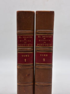 FOURNIER, Édouard. Histoire du Pont-Neuf. Edité à Paris chez Dentu en 1862. En 2 volumes de format In douze / In-12. Demi-basane brune. Dos à faux-nerfs soulignés d'un pointillé doré et encadrés à froid, titrage et tomaison dorés sur pièce...