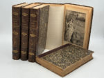 havane, dos lisses, filets à froids et dorés, fleurons dorés en long, titre en lettres d'or. 480 ; 504 ; 456 ; 480 ; 504 pages, 60 gravures par tome en N&B hors texte et environ 92 planches coloriées (16 au tome 1, 20 au tome 2, 20 au tome 3 , 20 au tome 4 et 16 au tome 5), nombreuses gravures en N&B dans le texte, un plan de Paris et ses monuments gravé en couleurs sur une grande planche dépliante in-fine du tome 5. Impression sur deux colonnes. Ensemble frotté avec quelques manques et accrocs sur le cuir, plats griffés. Quelques rousseurs sur les tranches, rousseurs et mouillures très marginales sur le papier. Déchirure sur le plan de Paris, une planche volante au tome 2. Passionnante histoire de Paris et des parisiens à travers les siècles, depuis la fondation de Lutèce jusqu’à la fin du 19ème siècle, accompagnée d'une très riche iconographie. Elle est l’œuvre de l'historien, romancier et héraldiste français Henri Gourdon, dit Gourdon de Genouillac (1826-1898). Ensemble composite : édition de 1881 pour les tomes 1 et 3 ; édition de 1886 pour les tomes 2, 4 et 5. Ensemble usé mais solide pour cette histoire de Paris abondamment illustrée.