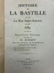 déchirures et manques sur la couverture, dos fendillé. Unique édition, peu commune, de cette reconstitution historique consacrée à la Bastille et à la rue Saint-Antoine avant 1789, publiée par G. Rémy avec des remarques et des descriptions. Elle est illustrée de 4 planches en N&B hors-texte, dont une vue et des plans de la Bastille, ainsi qu'un tableau présentant la liste des prisonniers délivrés le 14 juillet. Exemplaire complet des encarts publicitaires in fine. Intérieur propre, en partie non coupé.