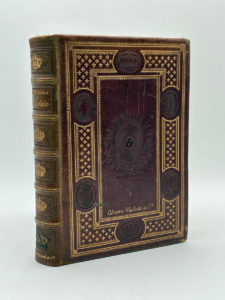 plats richement décorés d'un soleil central à froid encadré d'une large bande fleurdelysée et dorée séparée par des couronnes estampées à froid, gardes et contreplats de papier bleu, toutes tranches dorées. XVI et 483 pages, nombreuses illustrations en noir et blanc réalisés par la photogravure, 22 portraits sous serpente hors-texte dont un portrait de Louis XIV en frontispice, quelques bandeaux, lettrines ornementées et culs-de-lampe. Titre imprimé en bleu, noir et rouge, orné d'une vignette gravée. Dos passé, frottements, plats griffés. Édition originale accompagnée d'une très riche iconographie réalisée par la photogravure d'après documents d'époque et gravures, comprenant notamment 22 portraits hors-texte. L'historien Émile Bourgeois (1857-1934), grand spécialiste du XVIIème, donne ici un tableau exhaustif du "Grand siècle" en s'appuyant sur les textes de Voltaire, Saint-Simon, Spanheim, Dangeau, Madame de Sévigné, Choisy, La Bruyère, Laporte, Le Mercure de France, La Princesse Palatine, etc. Une superbe publication imprimée sur grand vélin blanc et vélin fort pour les hors-texte. Tampon de la bibliothèque du petit séminaire de Gourdon sur la première garde. Belle reliure décorative pour cette luxueuse publication sur le Grand Siècle.