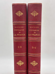DURUY, Victor. Histoire populaire de la France. Edité à Pairs chez Imprimerie générale et chez Lahure s.d. 4 tomes en 2 volumes de format In-4. Demi-chagrin rouge, dos à faux-nerfs soulignés d'un filet doré et encadrés à froid, fleurons...