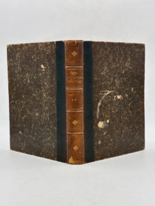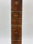 soulignés d'un filet doré, fleurons dorés, lettrines or. 306 et 377 pages. Impression sur trois colonnes. Dos insolé, petite déchirure en coiffe sup., frottements avec quelques manques, griffures sur les plats, coins dénudés. Pages légèrement brunies dans les marges. Très rares annotations manuscrites dans les marges. Édition originale de cette importante étude consacrée à l'Exposition universelle de 1889 à Paris. L'ouvrage propose une documentation complète sur la préparation, la réalisation et les aspects administratifs de cette exposition lors de laquelle fut présentée la Tour Eiffel. Solide exemplaire complet des 2 tomes en en 1 volume, intérieur très propre.
