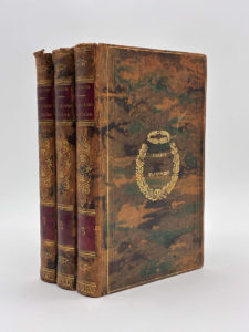 de fleurons et filets dorés, titrage et tomaison dorés sur pièces de cuir rouge. Marque de prix du collège d'Avranches doré et décor d'arabesques à froid dans un encadrement doré sur les plats, filet sur les coupes, tranches marbrées. Reliure de l'époque. 406-(1) ; 415 ; 385-(1) pages. Coiffes et coins frottés. Quelques rousseurs, plus présentes dans les marges. Série complète de cette histoire religieuse, monarchique, militaire et littéraire de la Révolution Française, de l'Empire et de la restauration, depuis la première assemblée des notables en 1787 jusqu'au 20 avril 1814, rédigée par le baron Lamothe-Langon d'après des documents originaux et inédits. Tome 1 : 1787 - 21 Janvier 1793 ; Tome 2 : 22 janvier 1793 - 10 novembre 1799 ; Tome 3 : 10 novembre 1799 - 20 Avril 1814. Premier prix d'excellence donné à Charles de Beaurepaire et son étiquette ex-libris au contreplat. Agréable ensemble bien établi à l'uniforme.