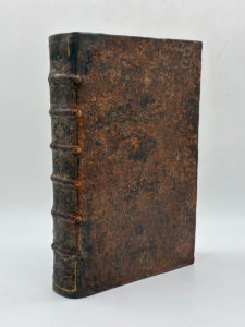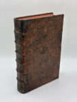XIV. Edité à Paris chez Henry Sara en 1645. De format In-folio. Pleine basane granitée brune. Dos à nerfs, caissons orné d'un fleuron au centre et fleurons d'angle dorés, titre en or dans une cartouche dorée. Roulette dorée sur les coupes (par endroits estompée). Tranches rouges. Reliure de l'époque. 27 ff. (dédicace, préface, tables des chapitres et des auteurs) + 886 pages + 32 ff. (table des matières). Page de titre illustrée d'une belle gravure royale, texte agrémenté de superbes bandeaux, lettrines ornementées et culs-de-lampe. Reliure épidermée mais néanmoins solide, quelques accrocs sur les nerfs, restaurations anciennes et peu visibles aux coiffes. Papier très légèrement roussi, rares piqûres. Édition originale de ce rare ouvrage de grande érudition, œuvre majeure de Guillaume de Peyrat (1563-1645), illustre religieux cistercien, théologien et historien, qui fut le page de Catherine de Médicis. L'auteur nous conte l'histoire des chapelles et oratoires royaux, le mot chapelle étant pris sous toutes ses acceptions, monuments, lieux, institutions religieuses chargées d'officier et de chanter, lesquelles ont duré plusieurs siècles depuis Clovis jusqu'aux affres de la révolution. Solide exemplaire de l'époque, intérieur bien frais dans l'ensemble.
