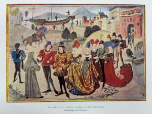 maroquiné rouge, tranches mouchetées. 380 pages, 700 illustrations (dont 12 planches en couleurs hors-texte, le reste en noir dans le texte et à pleine page) reproduites par la photographie d'après les documents du temps (Statues, Peintures murales, Tapisseries, Vitraux, etc.). Charnières fragiles (mors partiellement fendus), coiffes, coupes et coins frottés, légères griffures sur les plats. Panorama très détaillé du costume civil en France, présenté siècle par siècle depuis le 13ème jusqu'au 19ème siècle. L'étude nous fait connaître par le costume toutes les classes de la société, celle des artisans comme celle des gens qui « s'habillent », en s'appuyant sur une riche iconographie composée de 700 illustrations directes par la photographie, d'après les documents du temps (statues, peintures murales, tapisseries, vitraux, etc.). Exemplaire élégant, intact à l'intérieur.