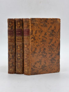 tranches rouges. Reliure de l'époque. VII, 328 pages, 2 ff.n.ch.(catalogue) ; 330 pages, 1f.n.ch.(errata) ; 352 pages, 1 frontispice gravé au tome 1, marque typographique en page de titre, bandeaux et lettrines ornementés. Frottements, mors fendu au premier plat du tome 1, mors partiellement fendu au tome 2, légères épidermures sur les plats. Quelques petites piqûres. Nouvelle édition de cette œuvre de Poullain de Sainte-Foix, qui propose une succession d’observations et d’anecdotes sur l'histoire de Paris et des Parisiens afin d'en dégager le caractère, les mœurs et les coutumes de la France. On trouve in-fine du tome 1 le catalogue des Livres nouveaux ou nouvellement imprimés pendant les années 1758 et 1759. Ex-libris A. Kuhnholtz-Lordat gravé par Dupont sur une étiquette contrecollée au contreplat. Agréable ensemble, complet en 3 volumes.