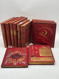 Contient entre autres : DESBEAUX, Emile. Les Pourquoi de Mademoiselle Suzanne. Dessins de Monvel, Scott, Vogel, etc. Gravure de Méaulle (12ème édition). Parois, Ducrocq, 1884. DESBEAUX, Emile. Les Découvertes de monsieur Jean : la terre et la mer. Dessins de Besnier, Brouillet, etc. Gravure de Méaulle. Paris, Ducrocq, 1888. - CANDÈZE, Ernest. Aventures d'un grillon‎. Dessins par Renard. Paris, Hetzel, sans date. Riche ensemble d'illustrés en assez bonne condition.