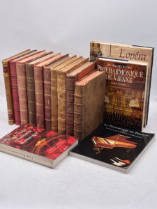 [MANETTE / MUSIQUE / PARTITIONS]. Ensemble de 14 ouvrages autour de la musique. 14 volumes de formats in-12 à in-4 dont 13 reliés et 1 broché. Texte en français, italien et allemand. Frottements, quelques signes d'usure. On trouve entre autres :...