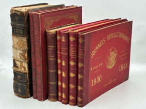 [MANETTE / RÉVOLUTION]. Ensemble de 8 volumes. 8 volumes in-4 reliés. Frottements, un volume à l'état d'usage. On trouve entre autres : - DAYOT (Armand). Journées Révolutionnaires - L'invasion : Le siège / La Commune - Napoléon - La...
