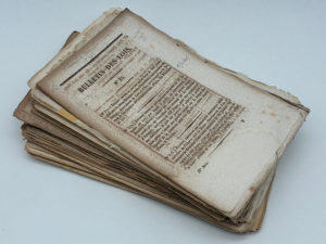 centre. Ensemble de 28 bulletins de lois publiés entre 1803 et 1896. Chaque bulletin présente un ensemble de décrets traitant de sujets divers ; on trouve notamment une loi pour la répression des crimes et délits commis dans les édifices ou les objets consacrés à la religion, plusieurs lois sur les finances de l'état ou encore sur les armées. Les 3 premiers bulletins ont été réimprimés. Intéressante documentation historique en bon état.