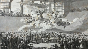 doré dans un encadrement à froid au premier plat. Reliure de l'époque. Coiffes frottées, rousseurs et brunissures sur les plats, second plat déteint, coins émoussés. Déchirure en page de garde, quelques rousseurs, plus présentes dans les marges. Série de 15 impressionnantes gravures à l'eau-forte montées sur onglets et légendées, figurant les évènements marquants de la Révolution française : prise de la bastille, serment du jeu de paume, abandon des privilège par les députés de l'Assemblée nationale dans la nuit du 4 août 1789, ou encore scènes de terreur (IX thermidor An II, assassinat des plénipotentiaires français au congrès de Rastatt, mort de Louis XVI sur la place de la Révolution, etc). Elles ont été gravées par Antoine-Jean Duclos (pour les dix premières) et par Duplessi-Bertaux (pour les cinq dernières), d'après les dessins de Charles Monnet. Les 14 premières sont numérotées de I à XIV, la dernière non numérotée. Bon exemplaire de cette fameuse série de gravures, une précieuse pièce pour les collectionneurs d'art sur la révolution française.