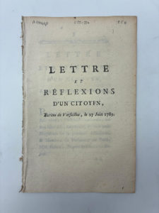 [ORDRES]. Lettre et réflexions d'un citoyen, écrites de Versailles, le 27 juin 1789. Sans mention de lieu, sans mention d'éditeur, en 1789. In-8 broché de 14 pages. Brochure publiée par un citoyen anonyme dans le contexte de la fusion des ordres...