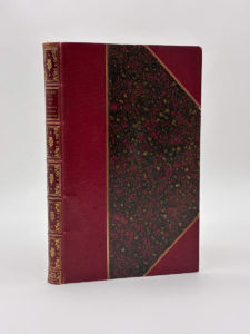 filet doré, caissons de double filets fleuronnés, auteur et titre en lettres d'or dans un double encadrement doré, tranche de tête dorée. Reliure signée par Martin Heldt. XX et 156 pages + 2 ff.n.ch. (rectifications et achevé d'imprimer), marque typographique sur le titre, bandeaux et lettrines ornementées. Titre imprimé en noir et rouge. Menus frottements. Édition originale de cette étude d'Henry Cohen sur les livres à vignettes. Elle contient la description d'un choix de plus de 450 ouvrages illustrés par Boucher, Cochin, Gravelot, Eisen, Moreau, Marillier, Monnet, Le Barbier, etc., avec le détail du nombre de figures, vignettes et culs-de-lampe contenus dans chacun d'eux, et les noms de tous les artistes qui y ont coopéré comme dessinateurs ou comme graveurs. Tirage limité à 550 exemplaires, celui-ci l'un des 15 exemplaires sur Whatman, deuxième tirage après 15 exemplaires sur papier de Chine. Passionnant guide pour les amateurs de livres à vignettes, très bien relié en demi-maroquin par Martin Heldt.