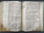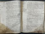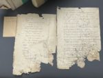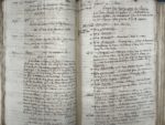 décollé ; importante mouillure angulaire sur le premier vol., souvent doublé d'un papier cristal jauni qui permet lecture et manipulation ; des lacunes aux tout premiers f.). Important recueil constitué par l'historien L.N.J.J. de Cayrol (Paris 1775 - Compiègne 1829), membre de l'Académie d'Amiens, de la Société d'archéologie de la Somme, de la Société d'émulation d'Abbeville. Les volumes sont sans page de titre, l'attribution et le titre sont donnés d'après la pièce de titre aux dos. Le manuscrit est très vraisemblablement autographe. Il se compose de près de 600 feuillets, soit 1200 pages écrites à l'encre sur papier. Il se présente comme la partie « sauvée » d'un ensemble plus important, puisque les notes qu'ils renferme, d'ampleur variable, sont numérotées de 2617 à 3340. Sont joints des feuillets usés et fragmentaires offrant les éléments d'une table des notices. Biographie, toponymie, histoire particulière de la région sont les principaux sujets abordés ; les volumes renferment également des notes historiques d'ordre plus général.
