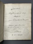 époque, dos à 4 nerfs anciennement recouvert de maroquin brun, titre, fleurons et filets dorés (petites taches et lég. frott. aux plats, un coin émoussé ; rares rousseurs). Manuscrit à l'encre sur papier, soigné mais non calligraphié. Il se compose de [2] feuillets (titre, rôles de la pièce) puis de 135 pages chiffrées, et enfin d'un feuillet où l'on indique le nombre de vers dévolus à chaque personnage. Deux professeurs nommés Fromentin ont enseigné successivement la rhétorique au Collège Mazarin. Une étude mentionne que François aurait exercé de 1724 à 1744, aussi penchons-nous pour cet auteur. Il aurait eu comme élève D'Alembert. Provenance : Louis-Maximilien Duru (1804-1869), prêtre du diocèse de Sens, historien et poète (cachet) ; Joseph Bierry (1851-1939), prêtre du diocèse de Sens (cachet). (M.-M. Compère, D'Alembert au collège, le parcours scolaire d'un Parisien, in : Rech. sur Diderot et l'Encyclopérie, 38, avril 2005, §30 https://doi.org/10.4000/rde.293).