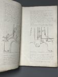 (couv. tachée, dos fendu, salissures). Intéressant document qui témoigne de l'activité industrielle dans le centre de la France au milieu du XIXe siècle. L'auteur ne relate pas son voyage, qui l'a conduit en partant de Paris jusqu'aux alentours de Dijon et Avallon, Saint-Etienne, Brassac, Montluçon, Nevers, et dont l'itinéraire détaillé figure sur une carte en couleurs au début du volume. Il consacre l'intégralité de son récit à la description technique très poussée, illustrée de près de 100 schémas, de plusieurs usines et sites de métallurgie et d'extraction de minerais : Fourchambault (p. 1 à 46, 35 schémas) ; Torteron (p. 47 à 52, 4 schémas) ; Imphy (p. 53 à 64, 6 schémas) ; La Machine (Décize, p. 65 à 86, 10 schémas) ; Usines Guérin, puis St-Jacques à Montluçon (p.87 à 94, 95 à 112, 3 + 7 schémas) ; Usine, et mines de Commentry (p. 113 à 144, 18 schémas) ; Bézenet (p. 145 à 151, 2 schémas) ; Usine de Terrenoire (cahier volant, 16 schémas).