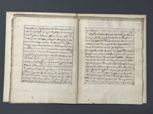 marge de la couv.). Manuscrit soigné et très lisible, à l'encre sur papier, au r° et v° (60 pages ½ écrites) ; le texte est encadré d'un filet noir, une grande marge a été réservée en pied de pages où figurent des notes explicatives de la même main. Il semble que ce texte soit inédit, du moins sous ce titre ; nous n'avons trouvé aucun manuscrit similaire dans les grandes collections publiques (Calames, CCfr). Notice définitive à venir.