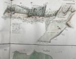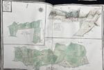 bien préservés et ne présentent que quelques rousseurs et salissures, qq. bordures effrangées ; celui de La Chartre est le plus taché avec des mouillures claires). Important et spectaculaire document qui offre une vue détaillée des terres situées aux alentours du domaine de La Gidonnière, situé à quelques kilomètres au Nord de La Chartre-sur-le-Loir. Il se compose de 46 plans manuscrits, aquarellés et légendés, sur papier fort. Il n'y a pas de plan numéro 17 sans doute en déficit. Chaque plan est contrecollé sur une toile grise (en partie décollée,) monté sur onglet de parchemin ; chacun mesure environ 65 x 97 cm. marges incluses. La première planche offre un plan de la ville de La Chartre [sur-le-Loir]. Le plan numéro 5, « de Rougerais Grande et Petite Pinquetiève » porte la date de 1766. Le plan n° 39 porte la mention « Chenou fecit 1765 ». Les parcelles sont représentées avec élégance, et légendées avec une grande précision. L'on y observe ainsi les emplacments de toutes sortes d'édifices et l'on peut aisément découvrir à quel usage telle ou telle pièce de terre pouvait être employée. Il est joint un document manuscrit du XIXe siècle, intitulé « Terre de la Gidonnière » (un cahier in-folio) qui donne pour chaque parcelle des informations sur les surfaces, leur valeur et les cultures qui y sont réalisées.