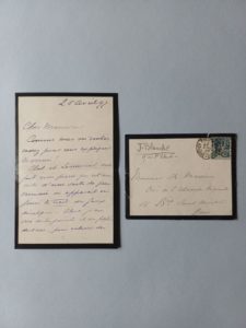 Jacques-Émile BLANCHE (1861-1942). Ensemble de 2 lettres autographes signées, adressées très probablement à Charles Masson (1858-1931), éditeur de L'Estampe Moderne. [Paris], 24 et 26 avril [18]97. 2 pages + 2 pages in-12, papier deuil (pli en...