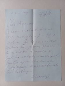 Alexandre IACOVLEFF (1887-1938). Lettre autographe signée, adressée à Charles Masson. [Paris], 25 III [mars] 1921. Une page in-4, papier azur (lég. pli en 4), enveloppe autographe. Proposition de rendez-vous, « Je serai enchanté de vous voir...